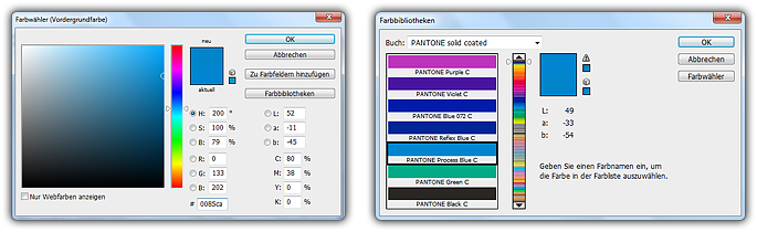 Photoshop > Farbwähler > Farbbibliotheken > Buch: PANTONE solid coated